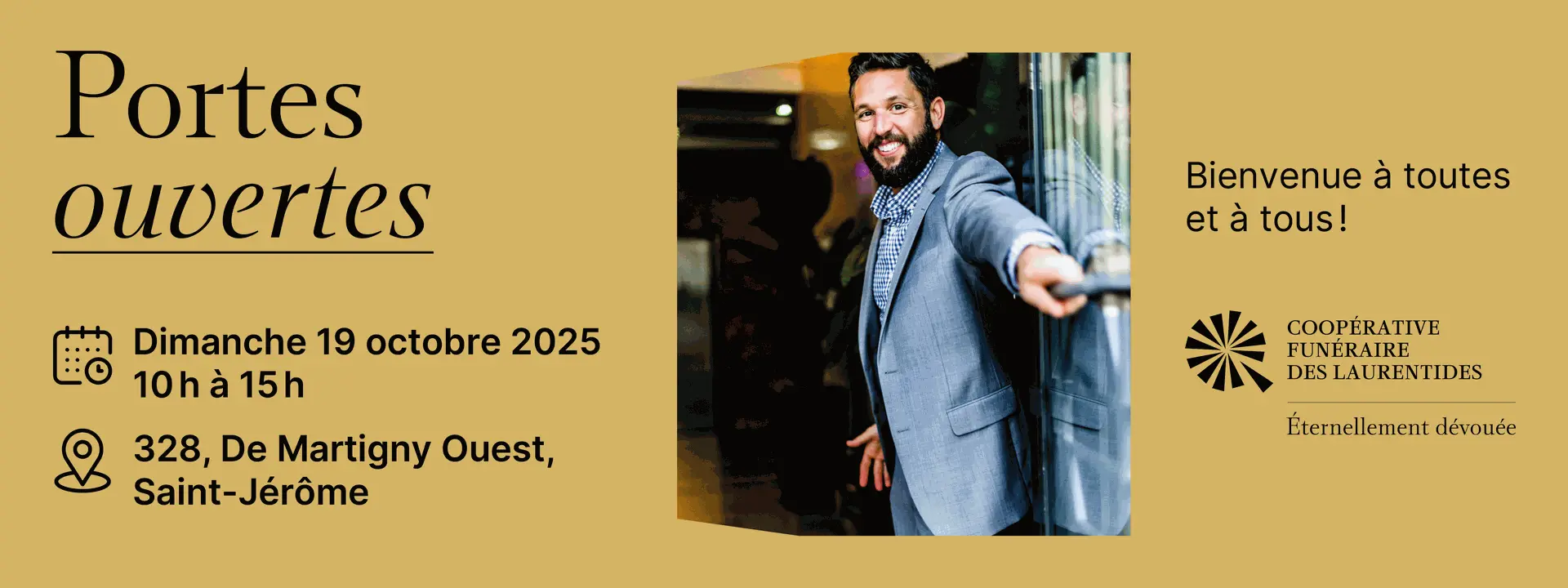 Vous aimeriez en savoir plus sur les rituels funéraires, l’embaumement, la crémation et les arrangements préalables? L’équipe dévouée de votre coopérative vous donne rendez-vous afin de répondre à toutes vos questions. Vous pourrez également visiter le laboratoire, les salons, la salle de sélection et plus encore!