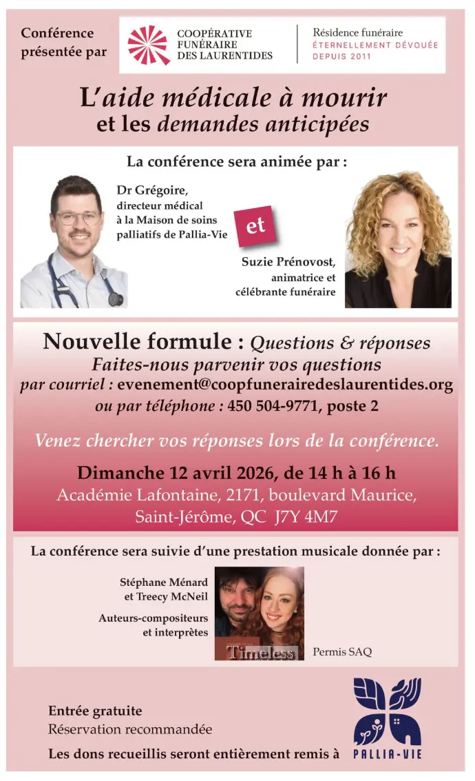 Venez rencontrer nos invités spéciaux et ensemble, démystifions ce que sont les soins palliatifs et l'aide médicale à mourir.